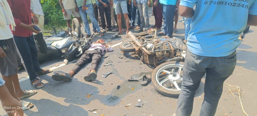मूल तालुक्यातील मारोडा येथील यश देविदास शेंडे आणि वडील देविदास कवडु शेंडे हे दोघेही वडील आणि मुलगा शेती संदर्भातील ऑनलाईनचे काम करण्यासाठी मूल येथे दुचाकी क्रं. एम एच 34 बी एक्स 8863 या दुचाकीने आले होते, काम पुर्ण करून ते दुचाकीने परत जात होते, दरम्यान शिवापूर चक येथील वासुदेव सहारे हे दुचाकी क्रं. एम एच 34 ए वाय 4332 या दुचाकीने मूलच्या दिशेने येत असतांना मूल-मारोडा मार्गावरील बल्की देव जवळ दुचाकीचा समोरासमोर धडक बसल्याने यश देविदास शेंडे वय 22 वर्षे, देविदास कवडु शेंडे वय 45 वर्षे रा. मारोडा हे घटनास्थळी ठार झाले तर वासुदेव किसन सहारे रा. शिवापूर चक याना उपचारार्थ उपजिल्हा रूग्णालयात नेत असतांना त्यांचा वाटेतच मृत्यु झाला. मूल पोलीस घटनास्थळी दाखल होवुन पंचनामा केला. उपजिल्हा रूग्णालयात उत्तरीय तपासणी करून शव कुटुंबियांच्या स्वाधीन करण्यात आले.
